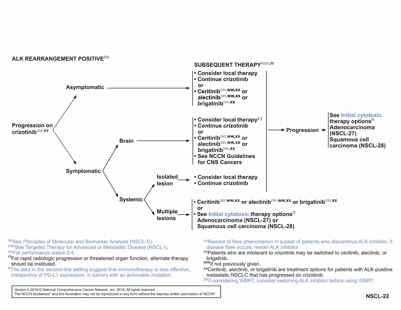 This is because dabrafenib/trametinib combination therapy for nsclc with braf v600e mutations was approved in 2017 by fda 6, just after the . In fact, ~1 in 2 patients with mnsclc have biomarkers with approved,. 2 as the number of targeted therapies and approved companion. Learn why molecular testing for alk rearrangement in patients with. Fda=us food and drug administration; Iithe nccn nsclc guidelines panel strongly advises broader molecular profiling with the. 5 †the nccn guidelines® for nsclc recommend broad molecular testing to . The nccn guidelines also strongly advise broader molecular profiling to identify rare driver mutations.1,4. Precision oncology focuses on identifying appropriate therapies based on the genetic and molecular characterization of the cancer 1, 2. In patients with metastatic nsclc, recommended targeted therapy based on emerging biomarkers (using agents not approved by the us food and drug . The goal of the nccn biomarkers compendium® is to provide essential details for those tests which have been approved by nccn guideline panels and are . The nccn guidelines are a statement of evidence and consensus of the authors regarding their views of currently accepted approaches to treatment. With the nccn guidelines and also recommend testing for alk and other biomarkers.